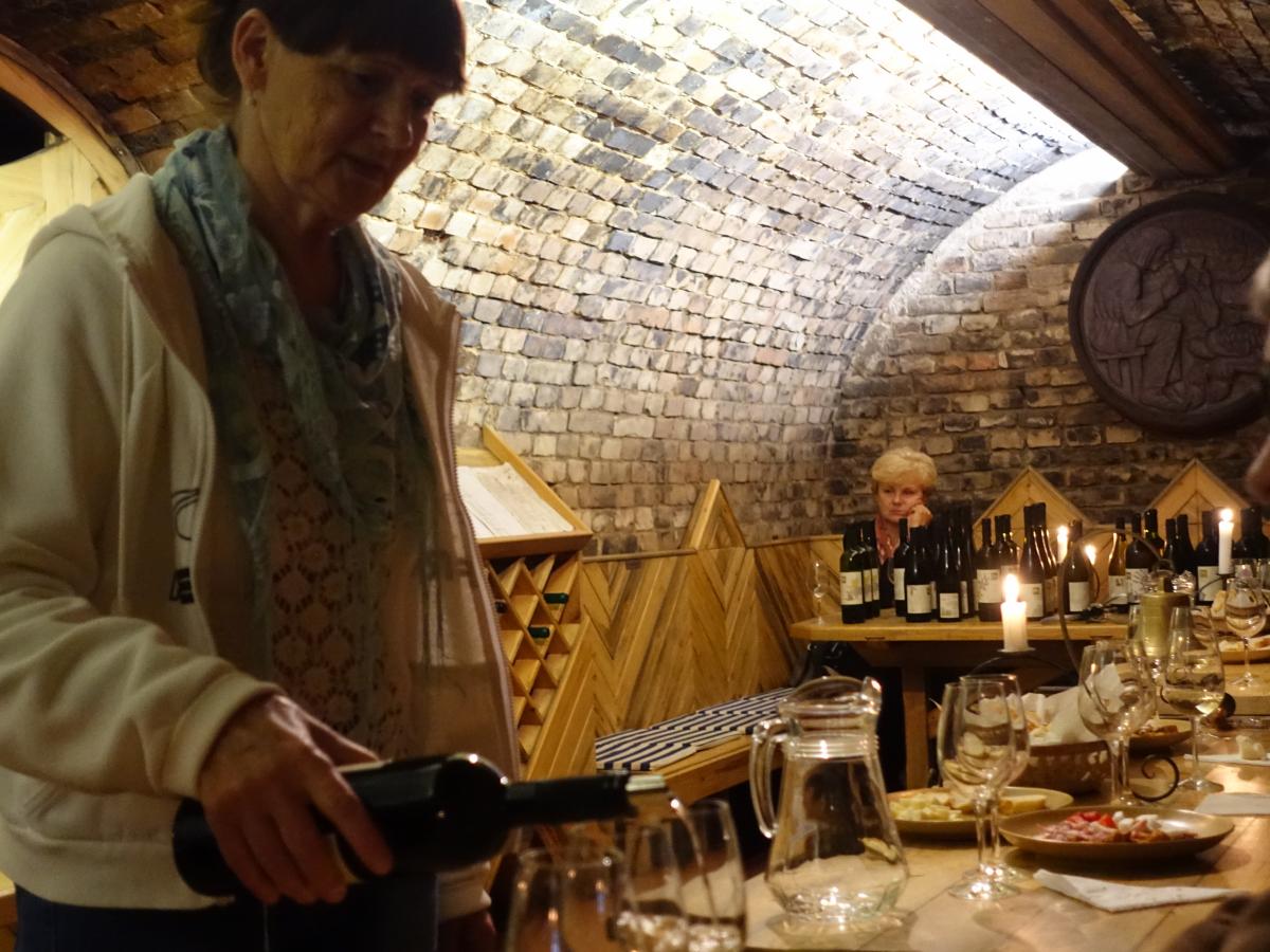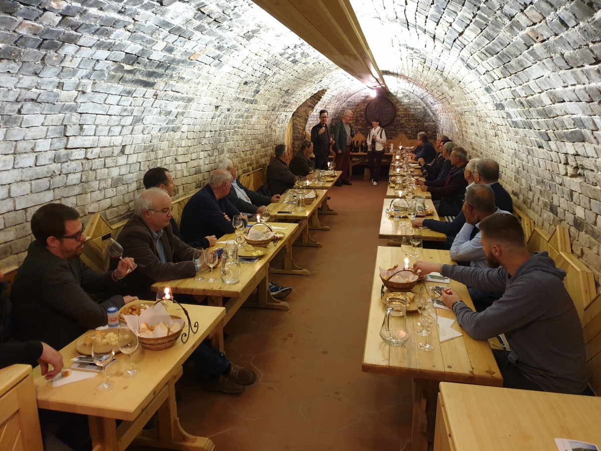A program részeként három pince borait kóstoltuk a klasszikus család pincéje mérettől, a komoly vendéglátásra szakosodott pincéig. A fő esemény a Pletser Pincében várt ránk, ahol a löszfalba vájt, több termet magába foglaló pincelátogatásban és kóstolásban volt részünk. A kóstolás után pedig a földbe vájt kemencében sült csülköt szolgáltak fel a társaságnak. A borkínálat alapvetően a vidékre jellemző fehér borokból állt, mint az olaszrizling, sauvignon blanc, generosa és különböző vegyes tételek, vagy a más vidékekről vásárolt vörös szőlőből készült rozé és vörös tételek.