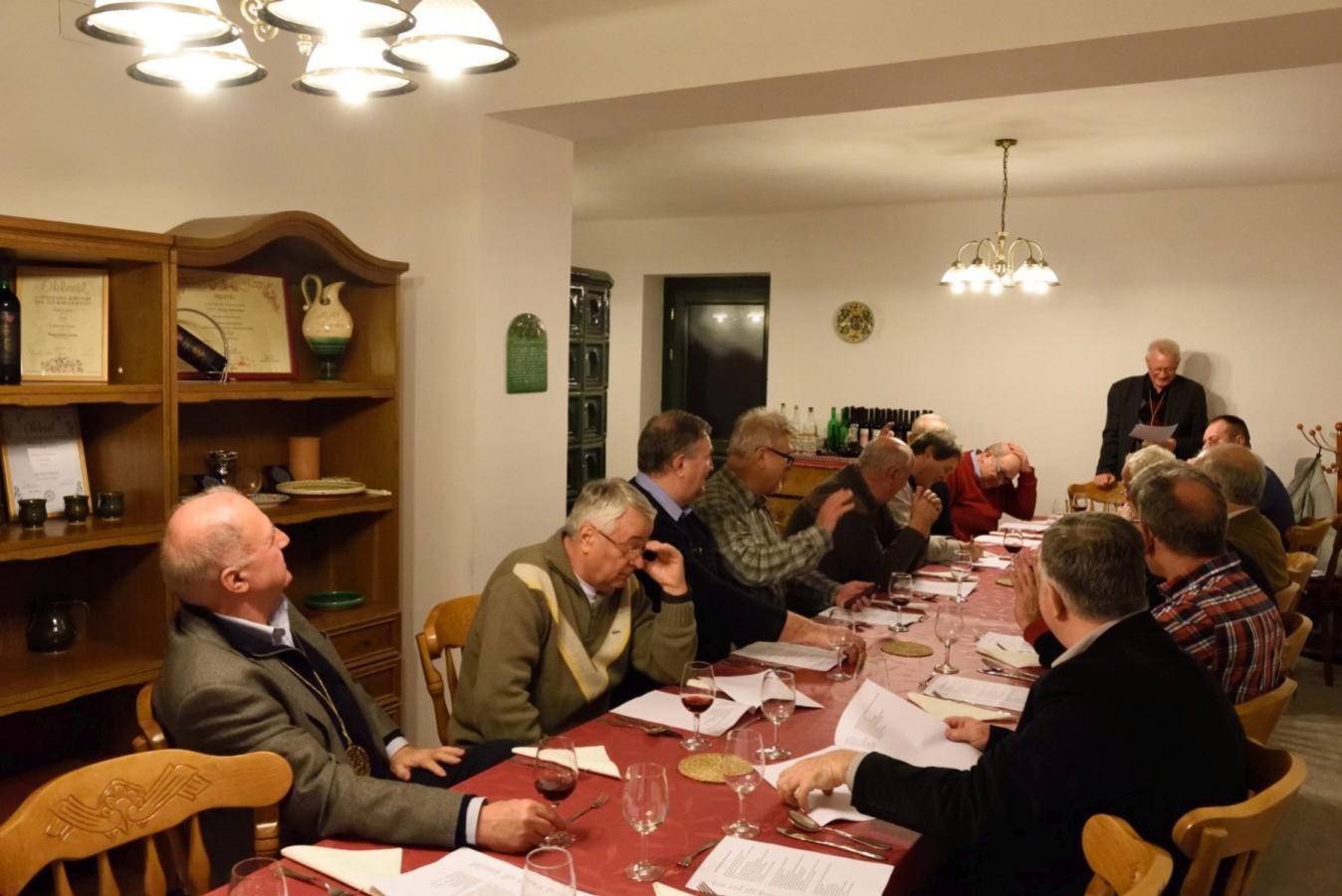 Az év utolsó rendezvényére a hagyományokhoz híven, a karácsonyi hangulatra készülődve, a klubtagok párjait is vendégül látva került sor. A helyszín ezúttal a Prelátus nagyterme volt. Szükség is volt a kényelmesebb helyre, mivel az este borász vendége által felkínált sorhoz ünnepi vacsora is párosult.